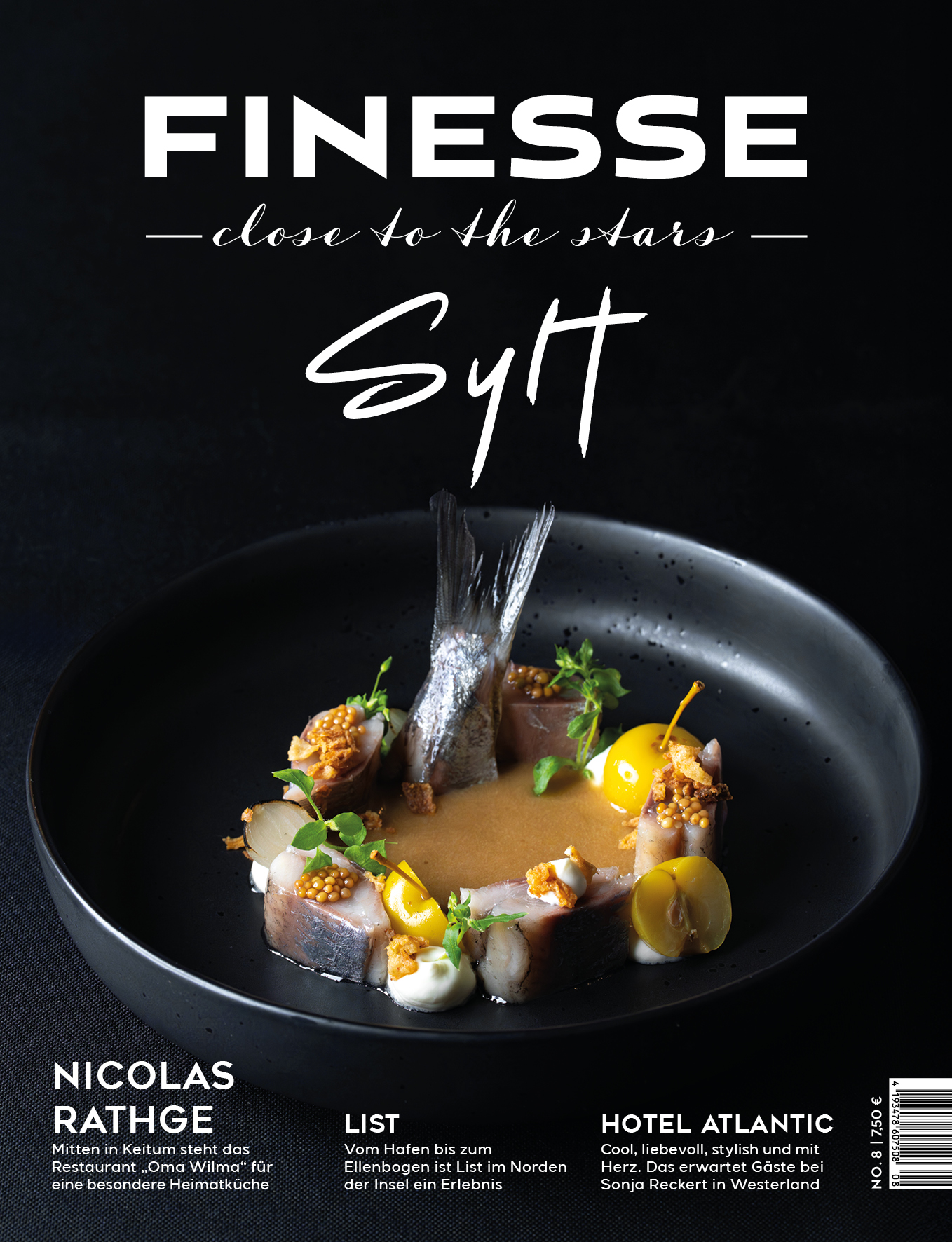 Die vierte Ausgabe von FINESSE SYLT nimmt Sie mit nach Tinnum ins »Landhaus Stricker«, wo Holger Bodendorf zeigt, was seine Sterneküche auszeichnet und was ihm als Hotelier wichtig ist. Sie lesen die Geschichte hinter dem Restaurant »Salon1900« in Keitum und erfahren beim Kochen mit Johannes King, warum Pfeffer mit Vorsicht zu genießen ist. Außerdem nehmen wir Sie mit auf den Hörnumer Muschelkutter von Alexander Leuschel und geben einen Einblick in das traditionsreiche »Café Ingwersen« in Morsum. Die vierte Ausgabe ist am 26. September 2023 erschienen und für 7,50 Euro im Online-Shop der DIE SEITE Verlag & Medien GmbH und im Zeitschriftenhandel auf Sylt erhältlich.